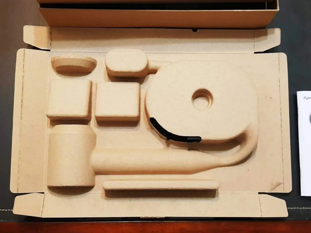 戴森对植物纤维模塑制品的质量要求以严苛著称,必需不掉粉,外观面的要求也是严格,不亚于苹果。