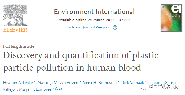北京时间3月25日凌晨,发表在环境科学领域顶刊《Environment International》(IF=9.621)上的一项最新研究中,来自荷兰阿姆斯特丹自由大学领导的研究团队首次在人类志愿者血液中发现了微塑料,这进一步引发了微塑料对人体健康长期影响的担忧。